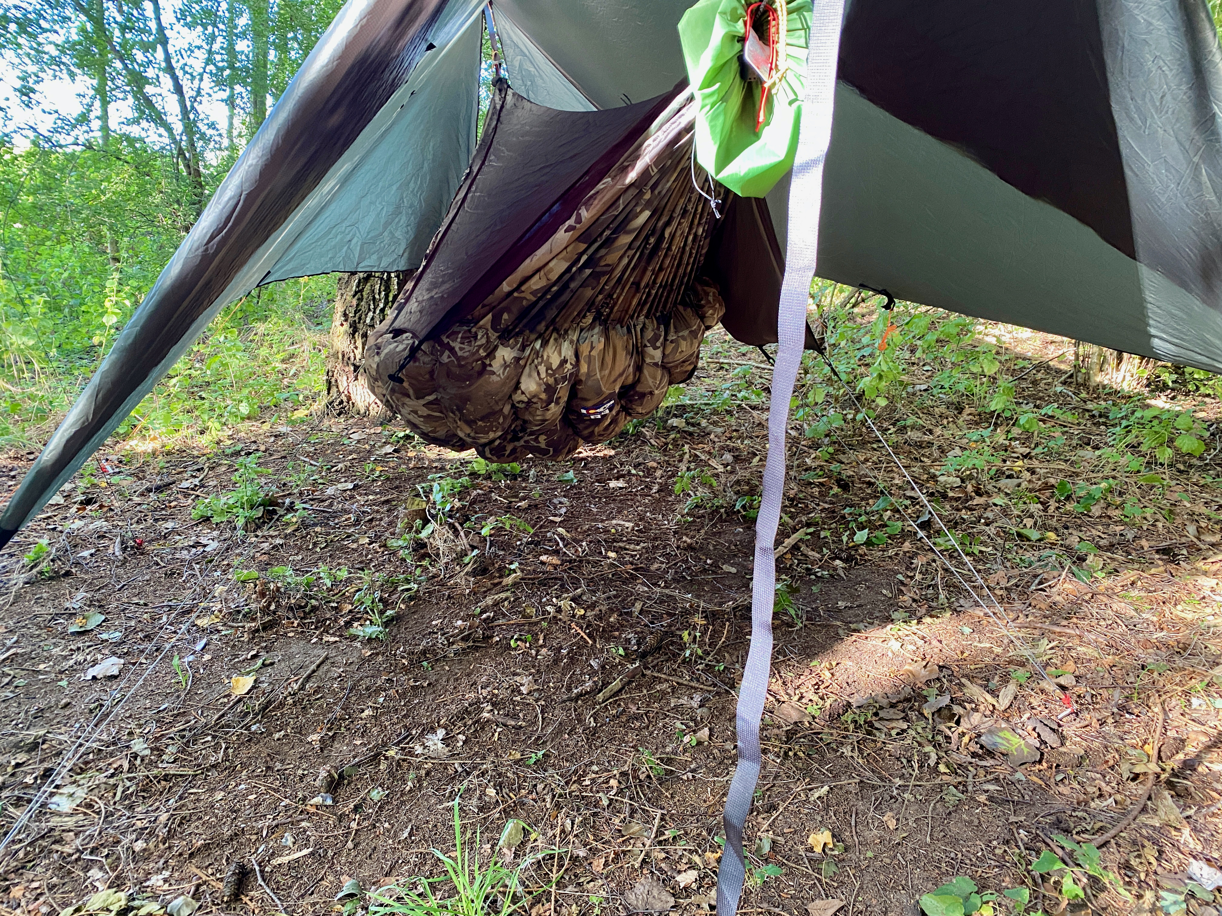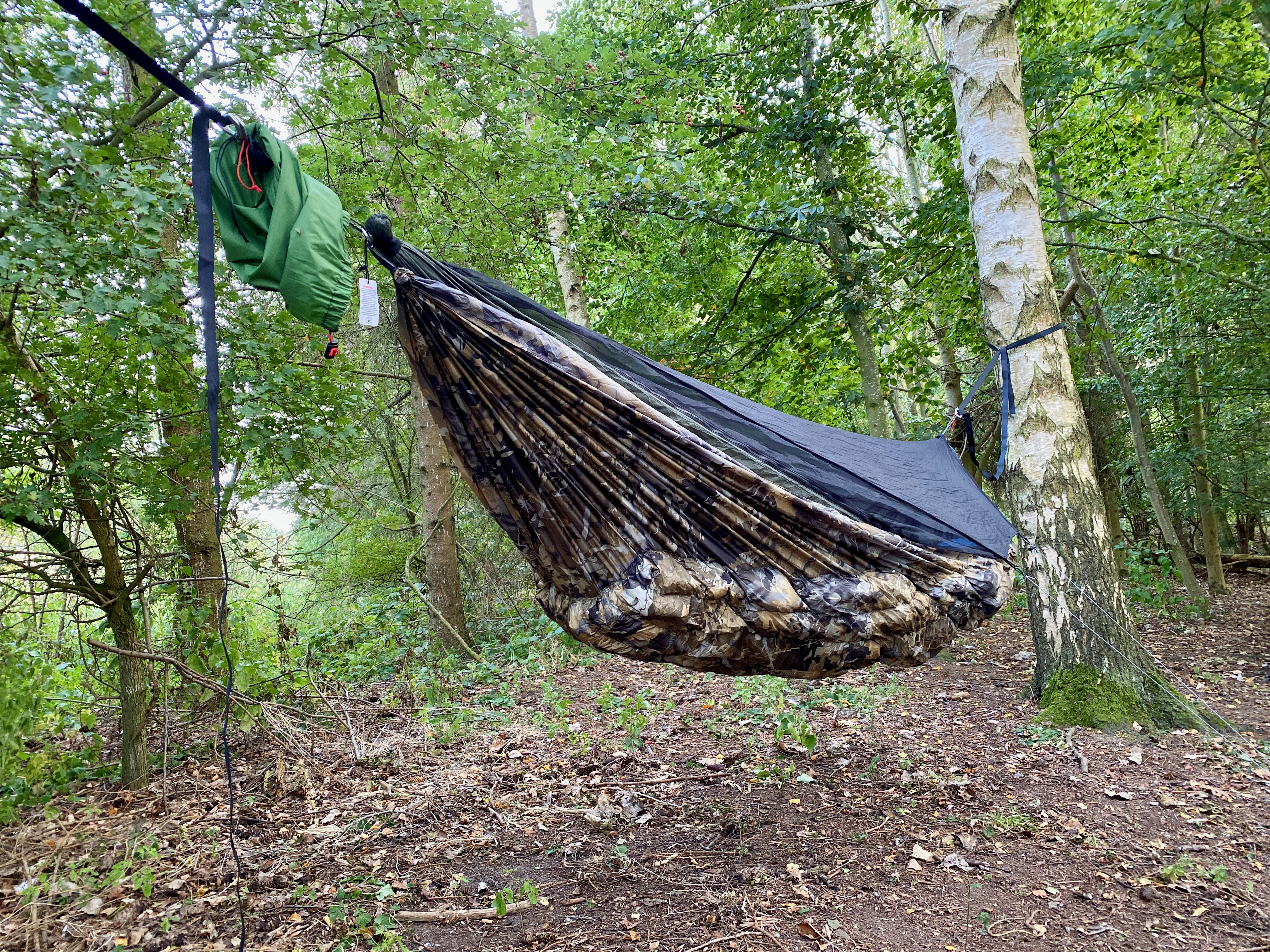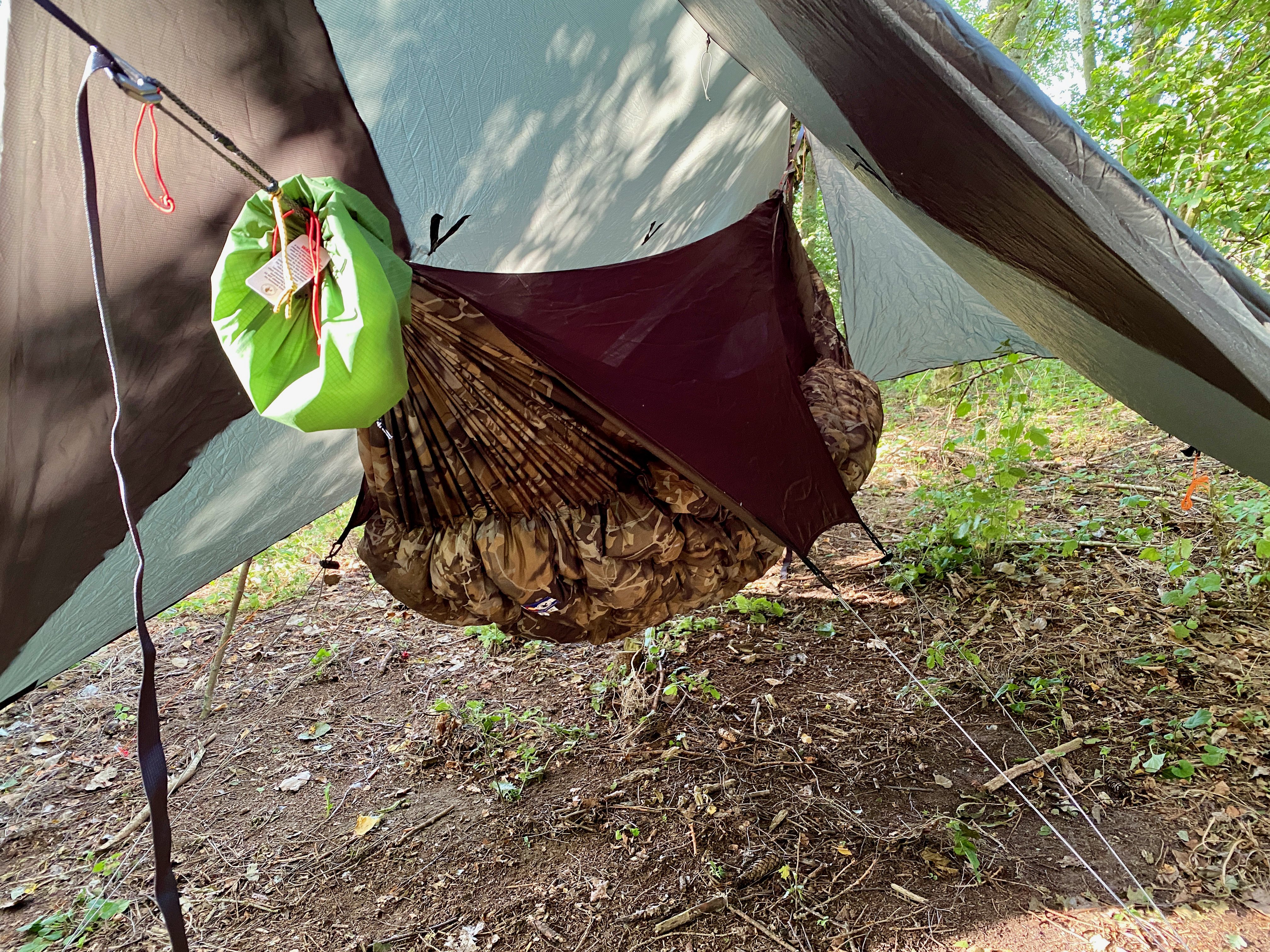 Warbonnet Wookie -17C Underquilt in Bushwack camo. The stuff sack color is called Fern Green